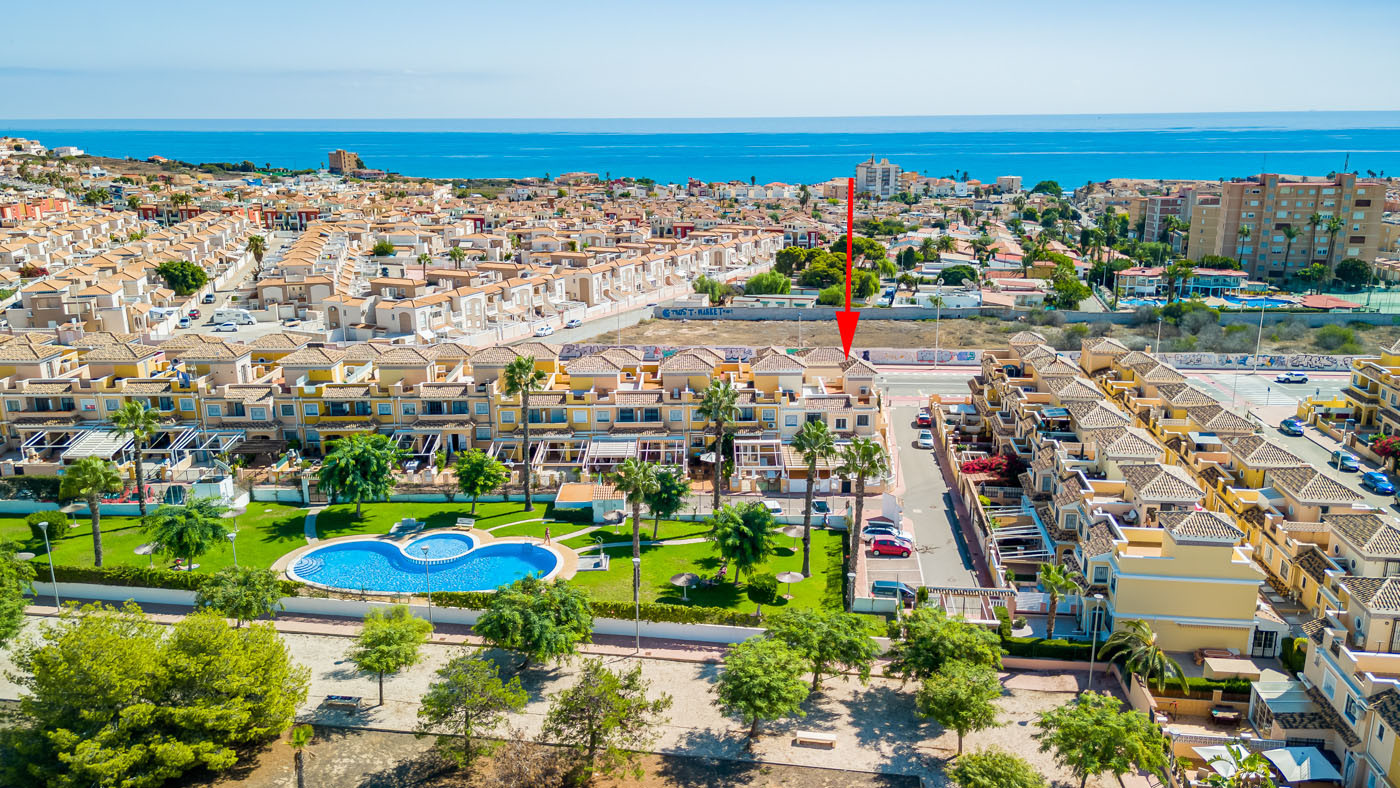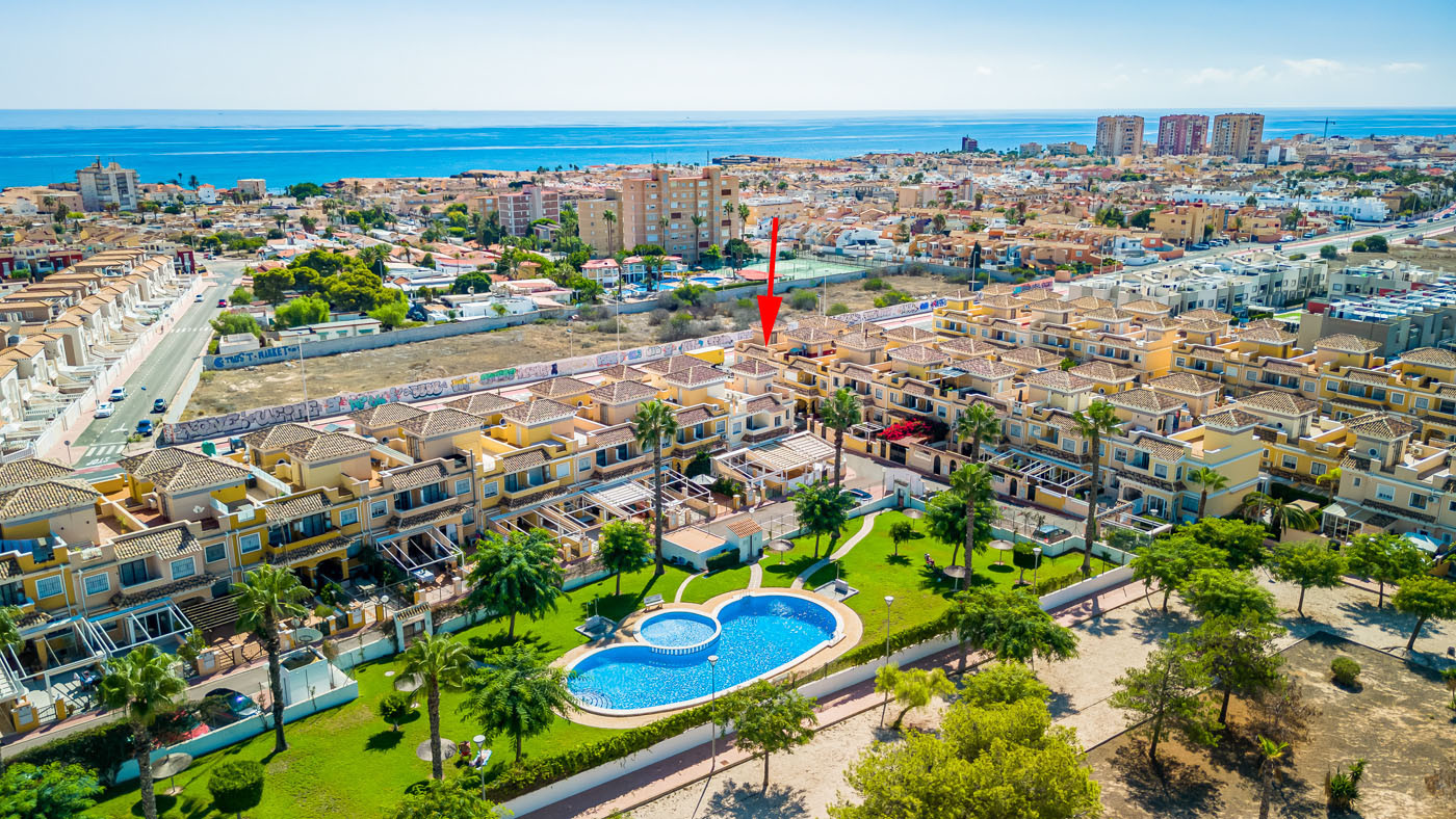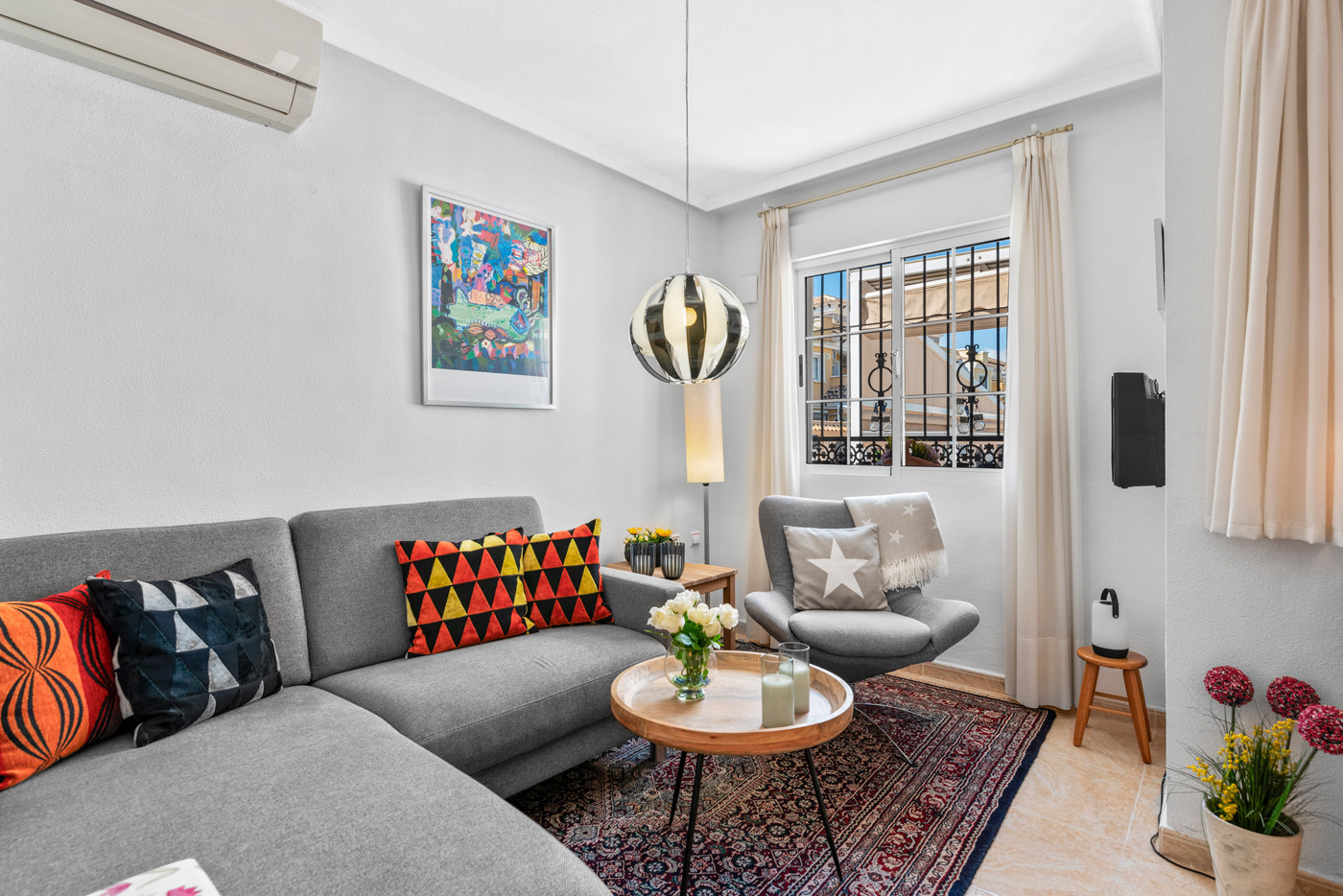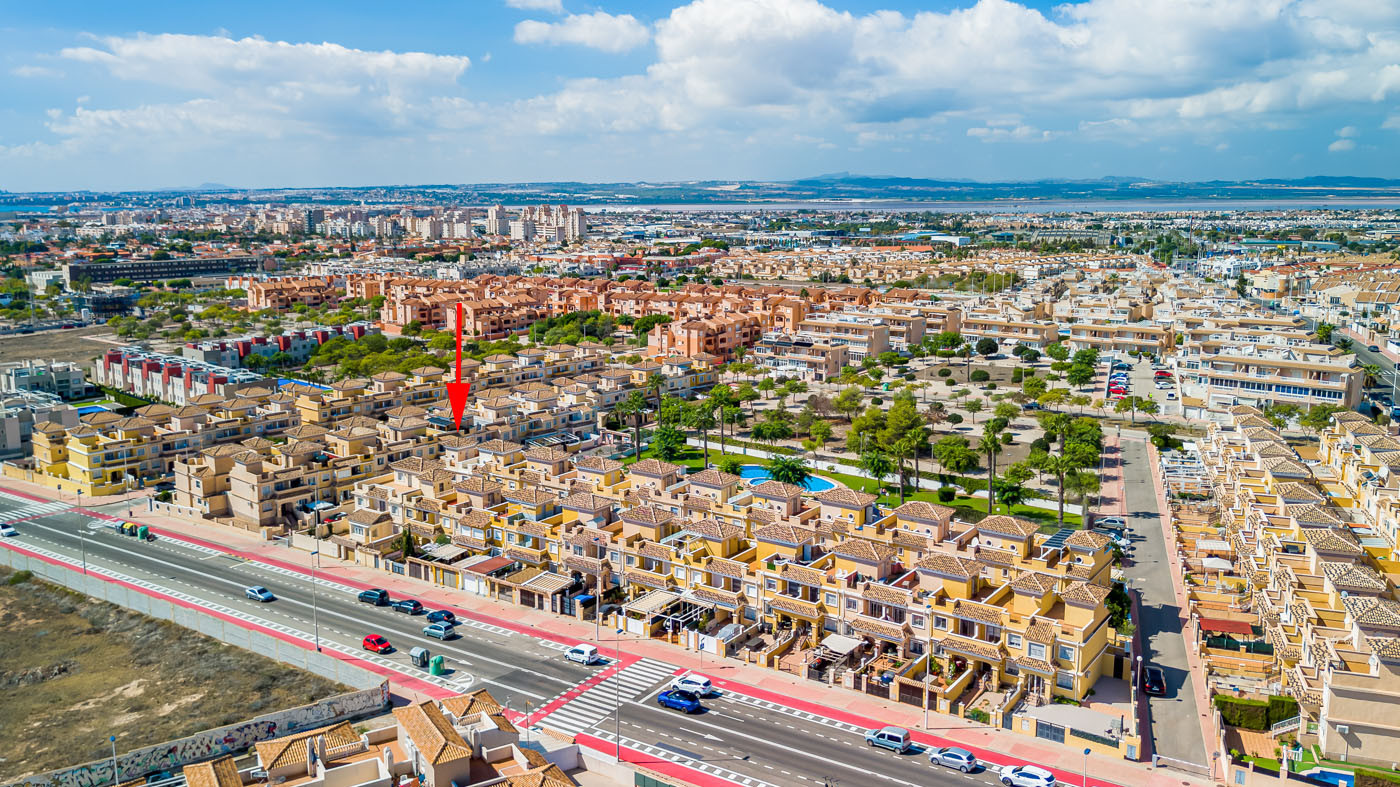 Denne charmerende og velindrettede bolig ligger i det populære område Aguas Nuevas i den nordlige del af Torrevieja – tæt på både byen, indkøb, fredagsmarkedet og ikke mindst strand.