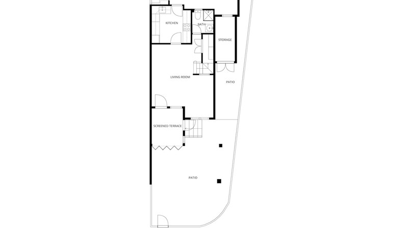 Indgangen til huset sker via en overdækket og delvist glasinddækket terrasse, som kan åbnes helt op i sommermånederne.